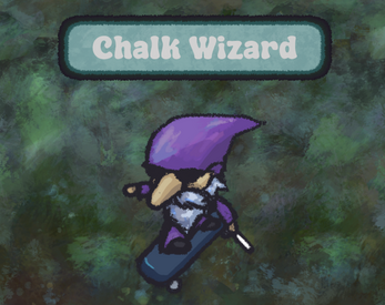 Chalk wizard is a 2D action game where you play as a wizard skating across the realm drawing loops of chalk to cast spells. Use your magic chalk to defeat enemies and gain experience and upgrades to become the gnarliest wizard you can.